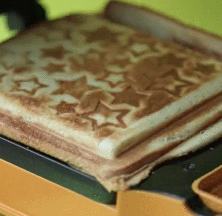 如果妳不想加餡料的話,光烤一塊吐司也行,還可以壓出焦黃脆邊和可愛紋路。